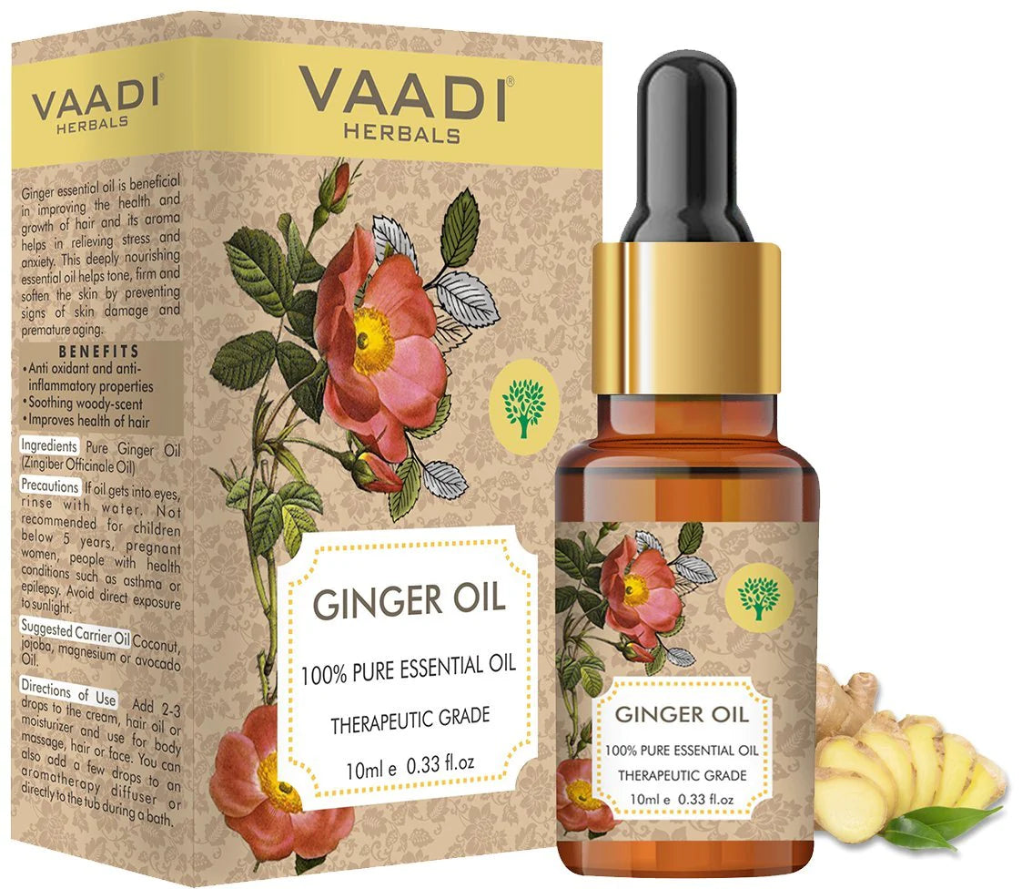 Ginger essential oil is beneficial in improving the health and growth of hair and its aroma helps in relieving stress and anxiety. This deeply nourishing essential oil helps tone, firm and soften the skin by preventing signs of skin damage and premature aging. Each bottle of 10 ml contains 280 drops. With the usage of 4 drops per application, this bottle will last for 70 applications